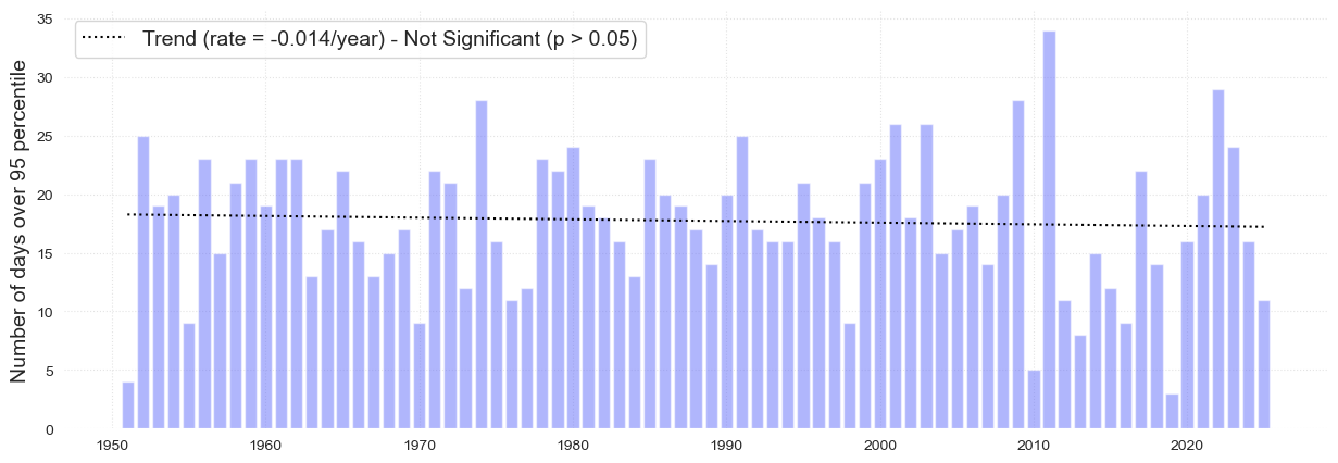 figsize = (15, 5), y_label = f'Number of days over {prcentile} percentile')