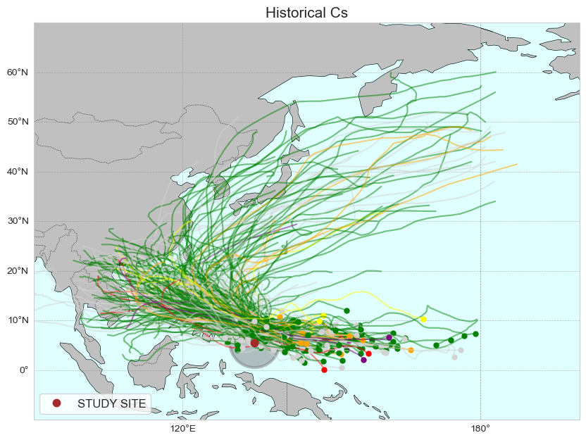fig, ax = Plot_TCs_HistoricalTracks_Category(