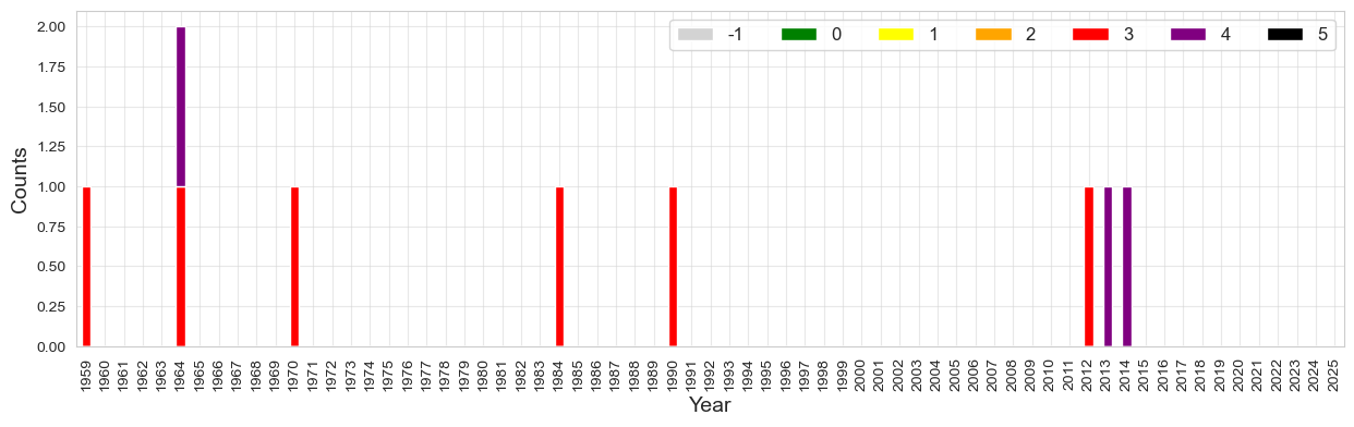 time_sev = tcs_sel_params.where(tcs_sel_params.category >= 3, drop = True).dmin_date.dt.year.values