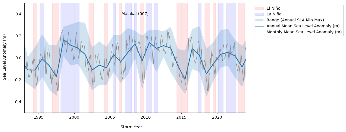 plot_TG_rsl_anomaly_annual(sid, fig, ax, rsl_yearly_mean, rsl_years, rsl_anomalies,enso_events,oniPlot=True)